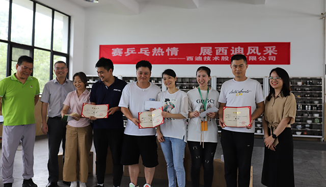 隨后,在比賽現(xiàn)場進(jìn)行了頒獎(jiǎng)儀式。公司董事長、常務(wù)副總以及乒乓球賽組委會主席分別為獲獎(jiǎng)選手頒發(fā)榮譽(yù)證書及獎(jiǎng)品。此次“賽乒乓熱情,展西迪風(fēng)采”第二屆西迪杯乒乓球賽圓滿結(jié)束。展現(xiàn)了西迪職工們積極向上,健康生活的風(fēng)采,進(jìn)一步融洽工作氛圍,讓我們期待下一次比賽更加精彩!
